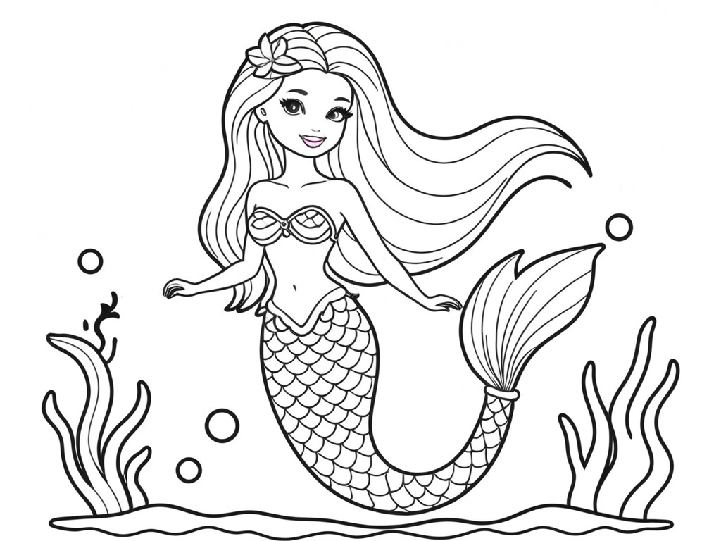 Barbie Mermaid in the Ocean Coloring Page