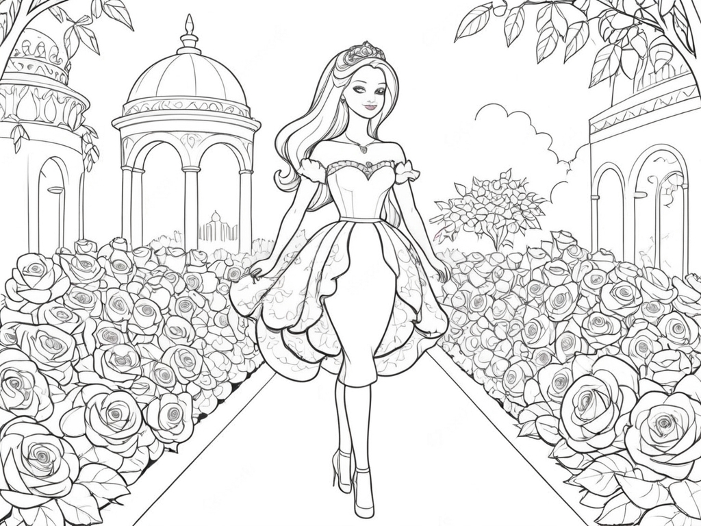 Barbie Princess in a Rose Garden Coloring Page