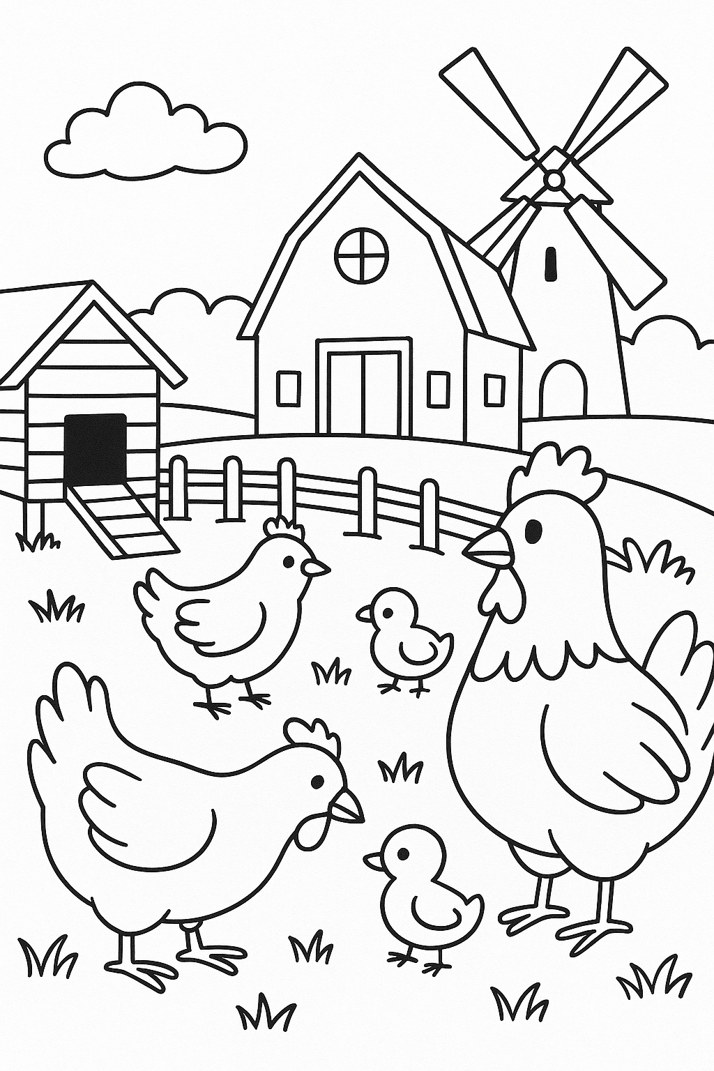 Farm with Chickens Coloring Page