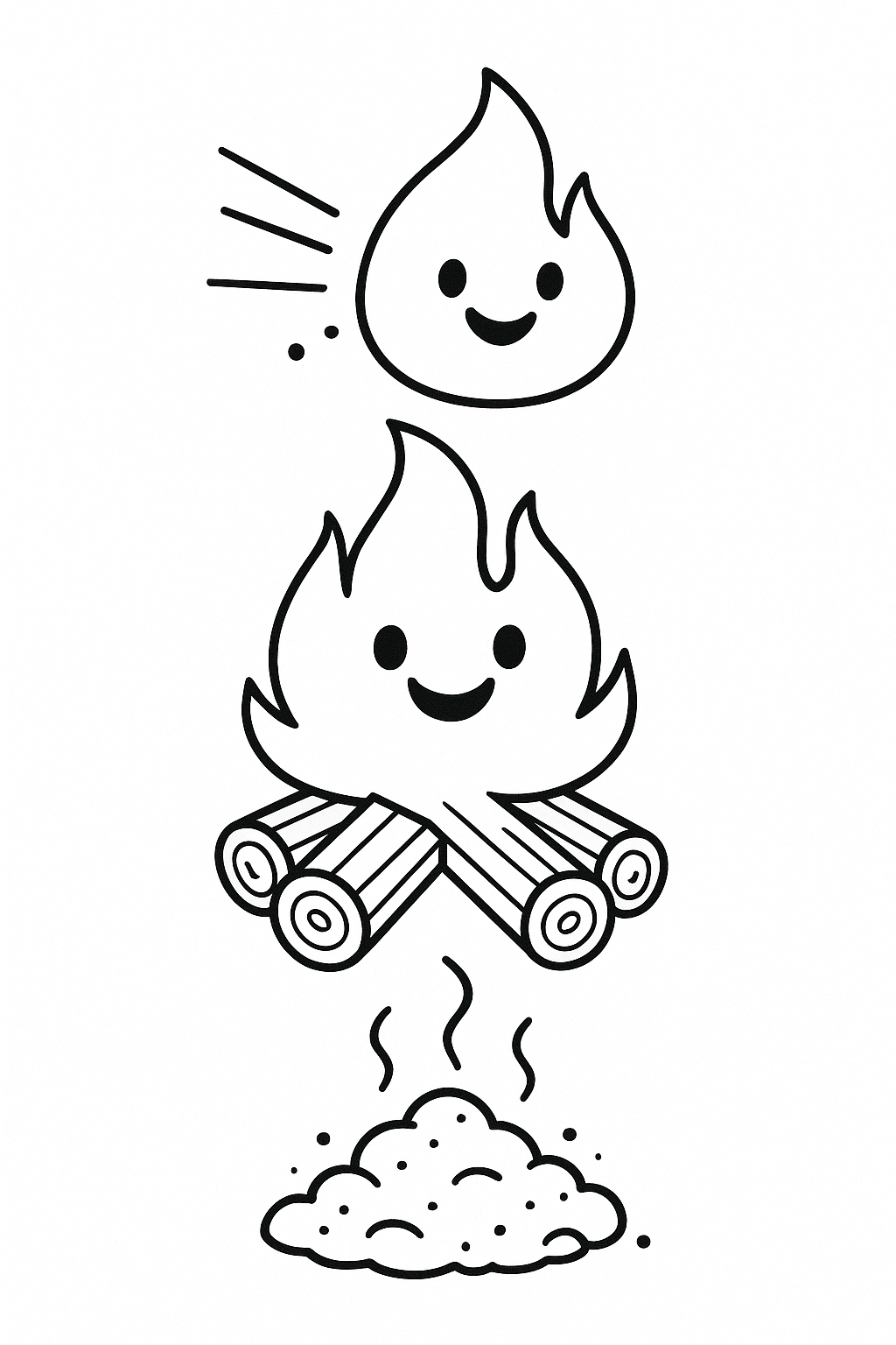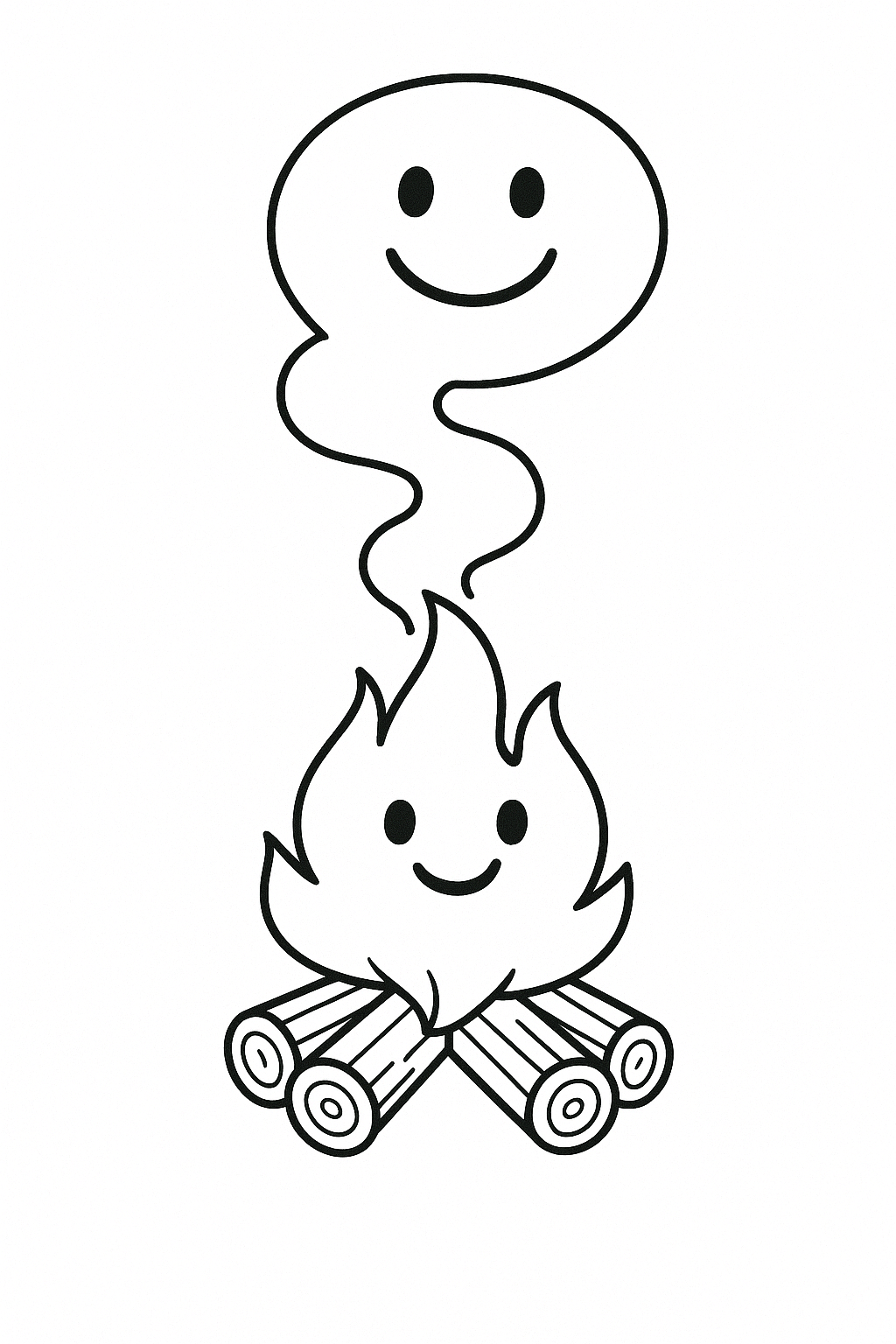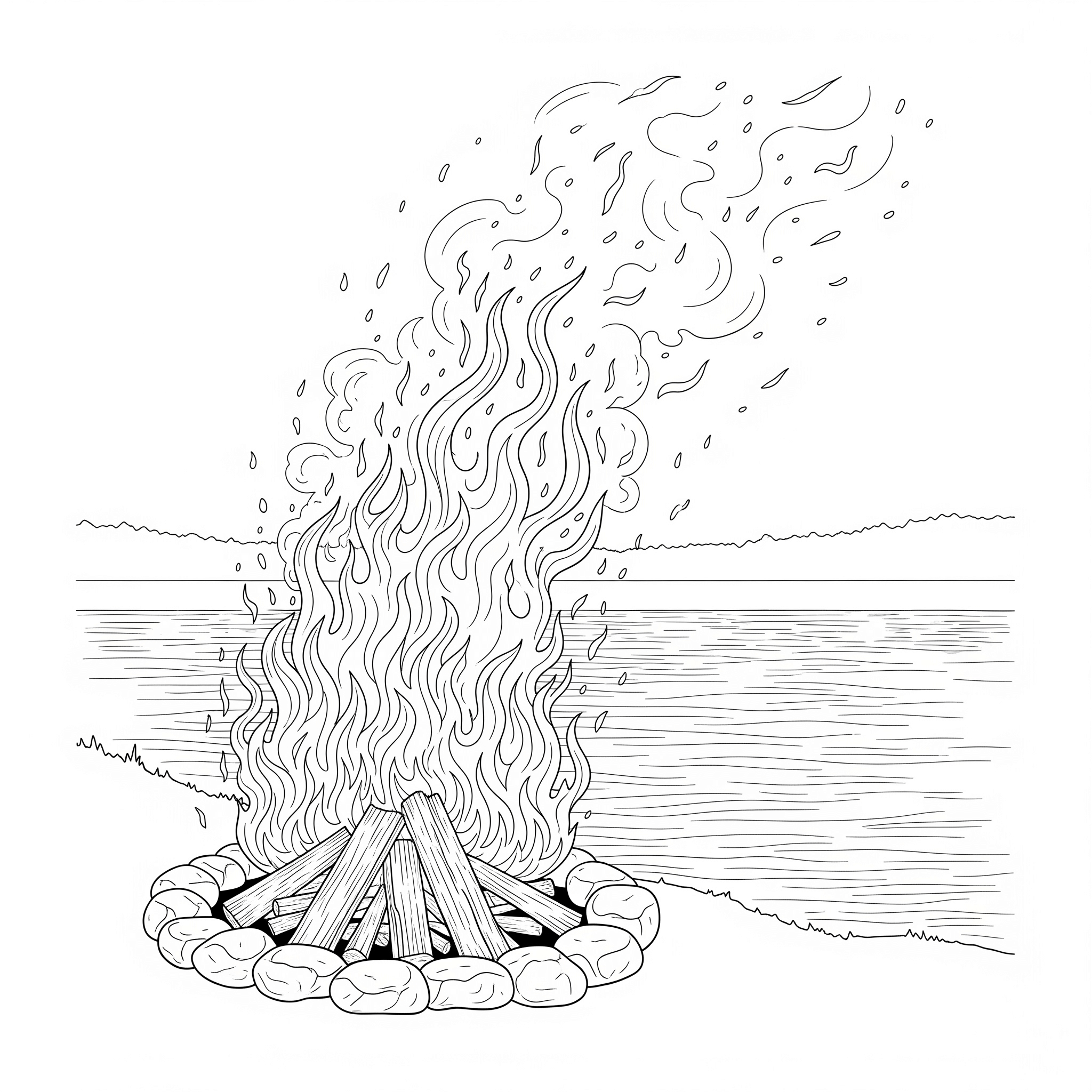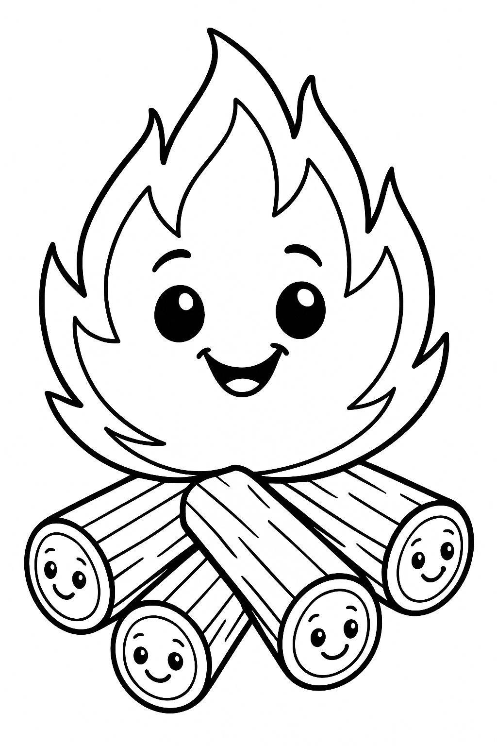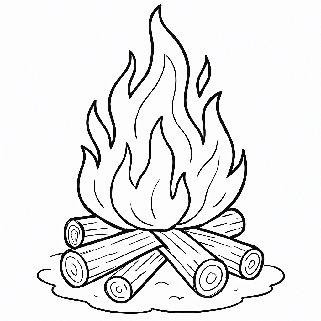 A classic campfire with logs and flames, ideal for summer evenings, celebrations, or relaxing coloring time.