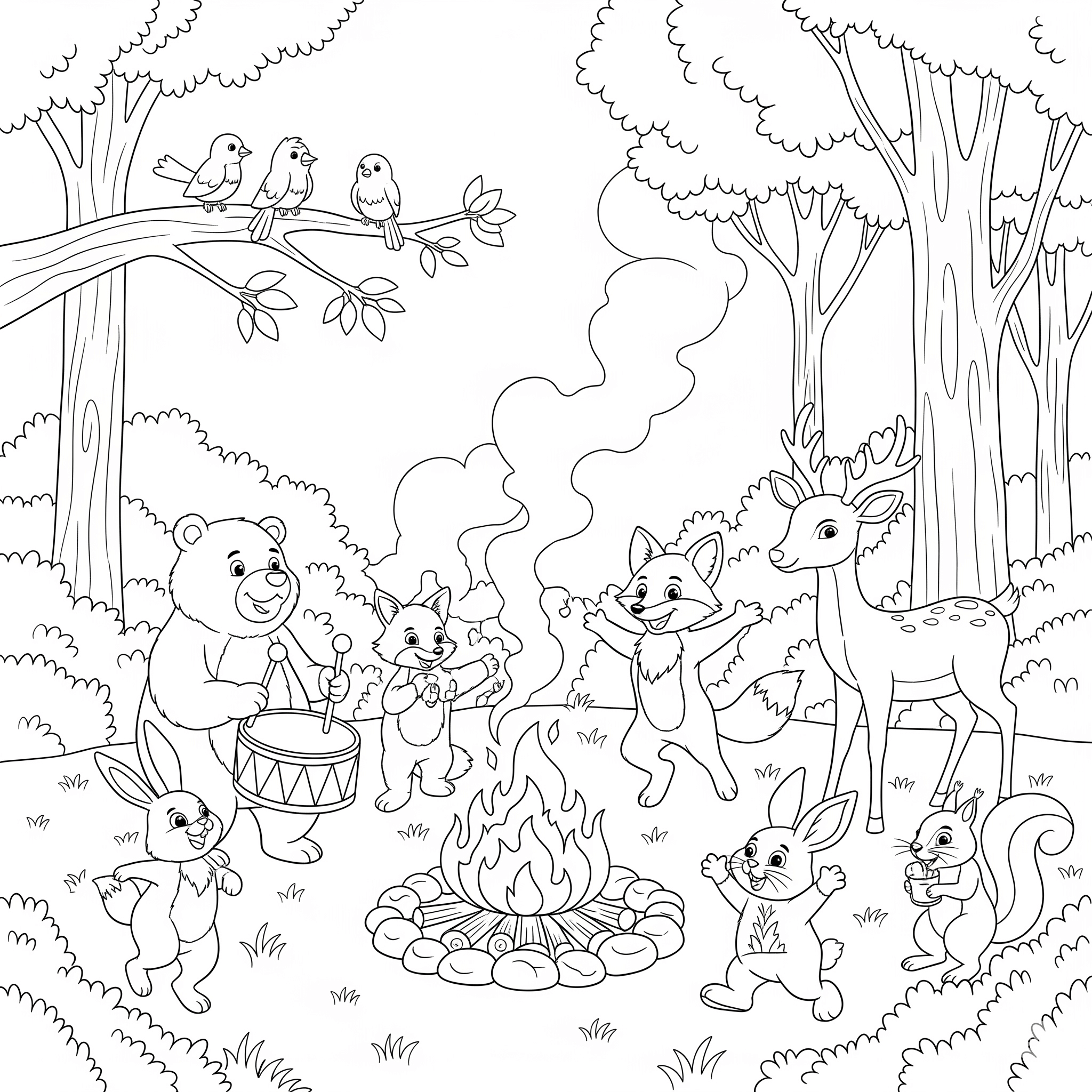 Campfire Party - Coloring Page