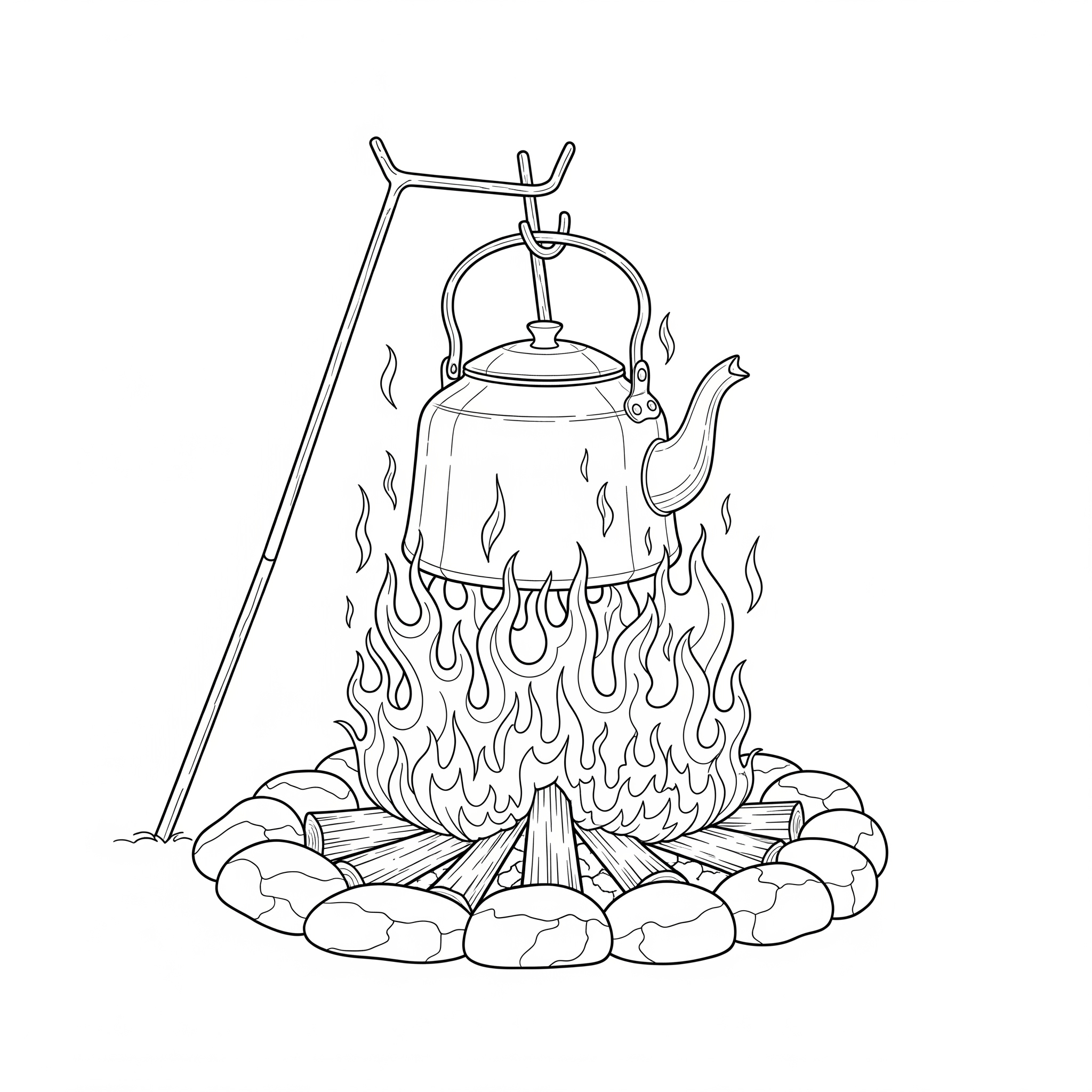 Campfire with Cauldron - Coloring Page