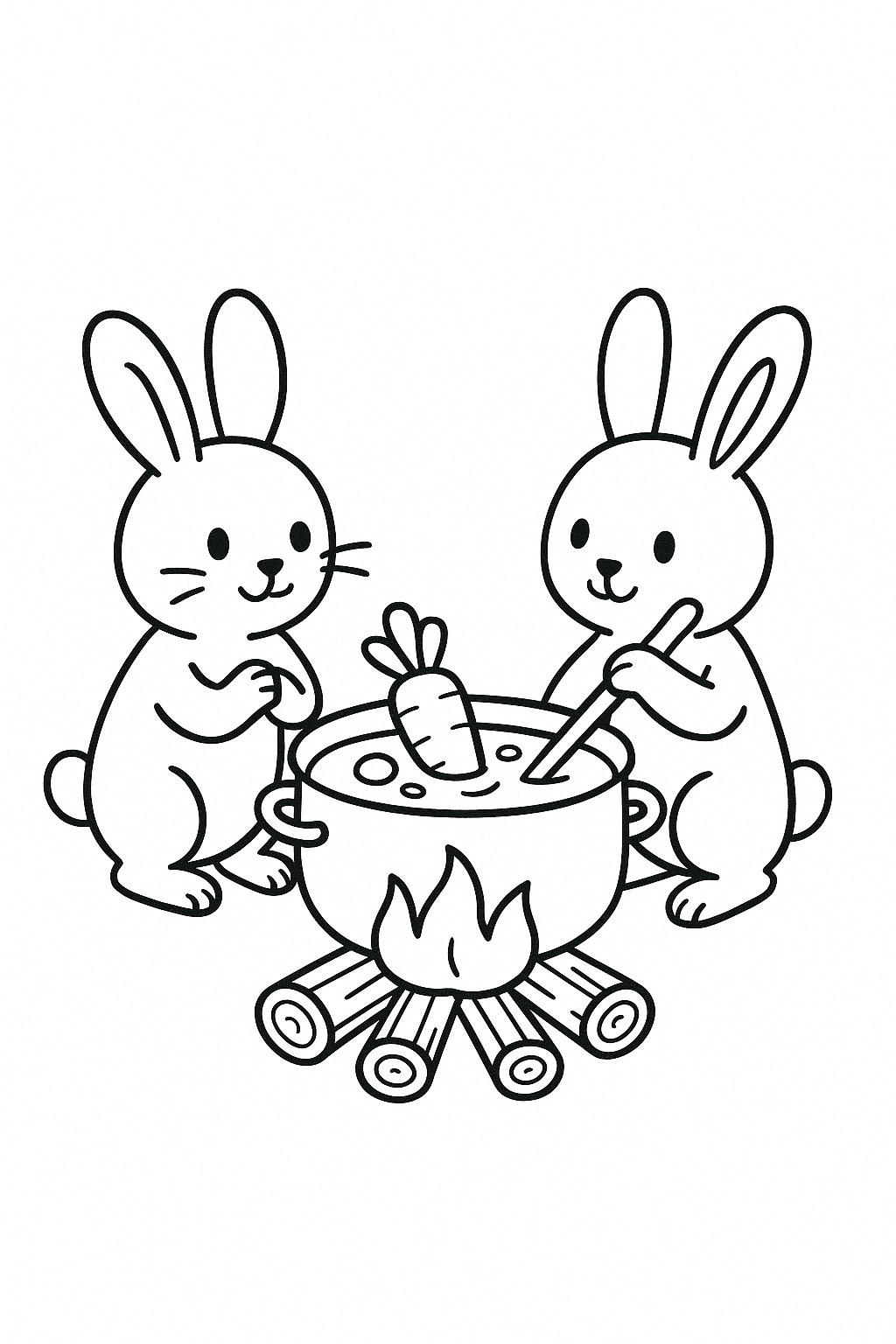 Campfire with Rabbits - Coloring Page