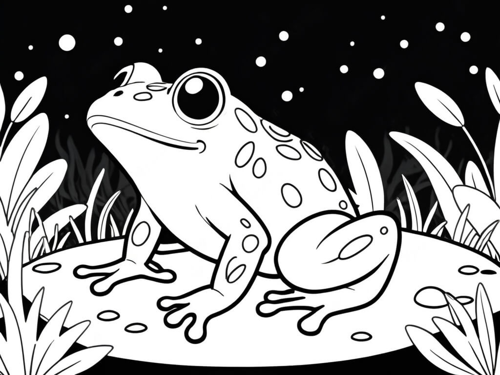 Frog Watching the Night Coloring Page