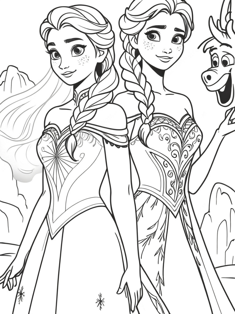 Welcome to the snowy kingdom of Arendelle. In this collection of Frozen coloring pages, you will find favorite scenes and characters like Anna, Elsa, and Olaf. Grab your pencils, print your favorites, and bring each page to life with your own colors.