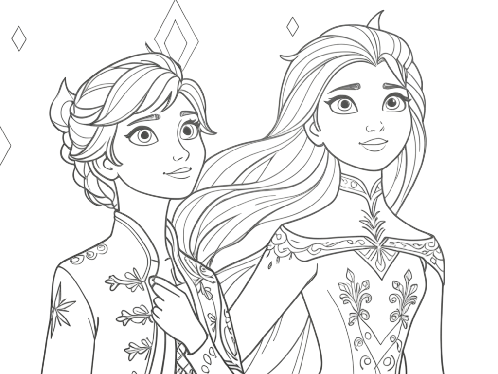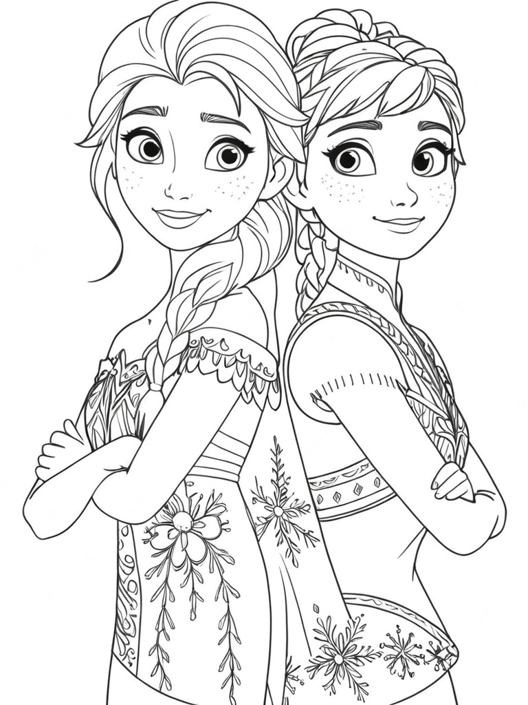 A shared portrait of Elsa and Anna, perfect for contrasting color styles.