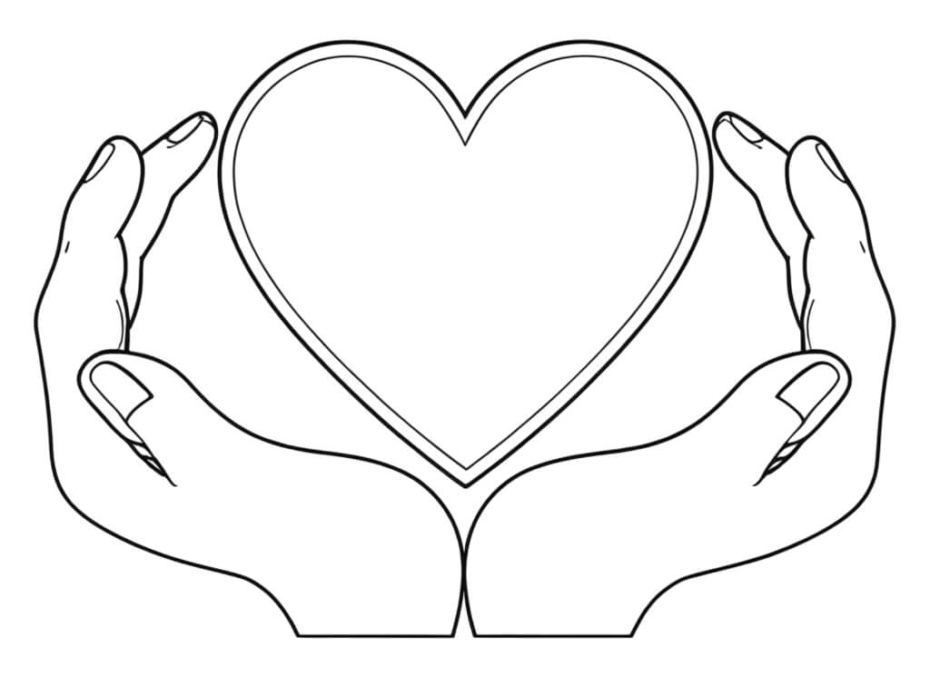Heart in the Middle of Hands Coloring Page