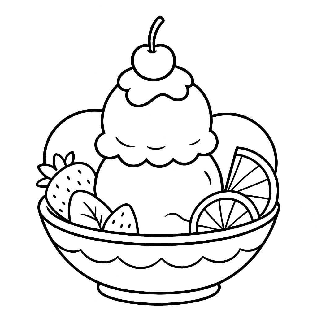 Ice Cream Sundae with Fruit Slices Coloring Page
