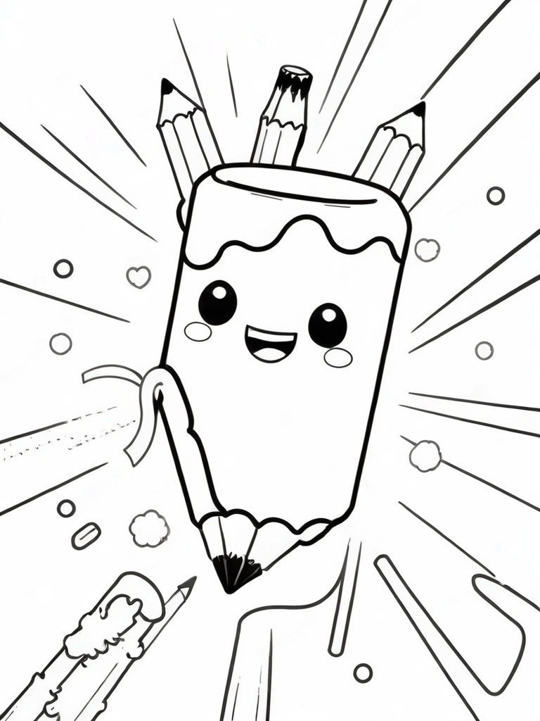 A colored pencil as a kawaii character, ideal for adding bold patterns and lettering.