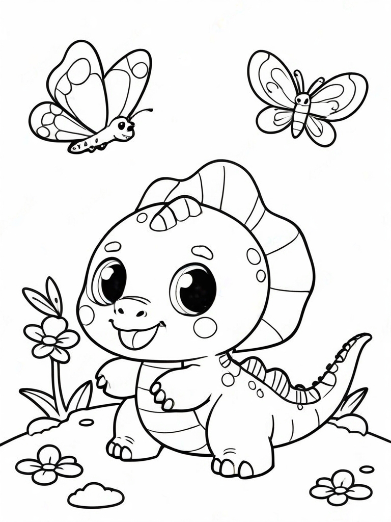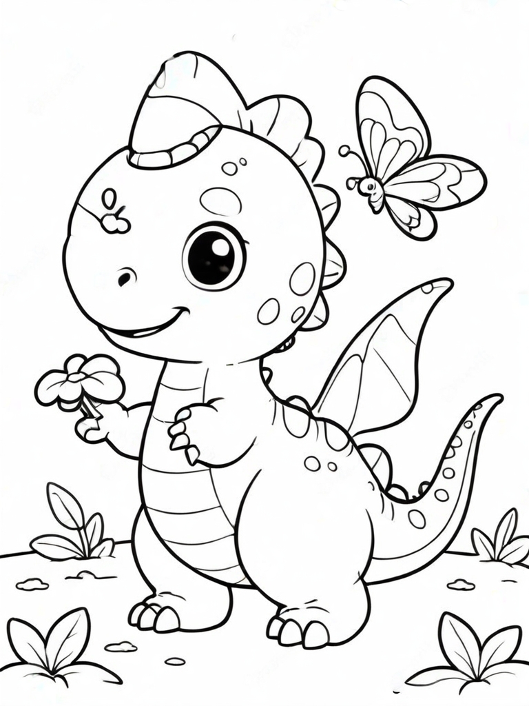 A small, friendly dinosaur in kawaii style, perfect for a mix of pastel and green tones.
