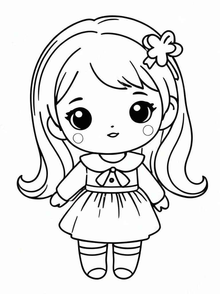 A cute kawaii doll with big eyes and a sweet dress, perfect for creative color experiments.