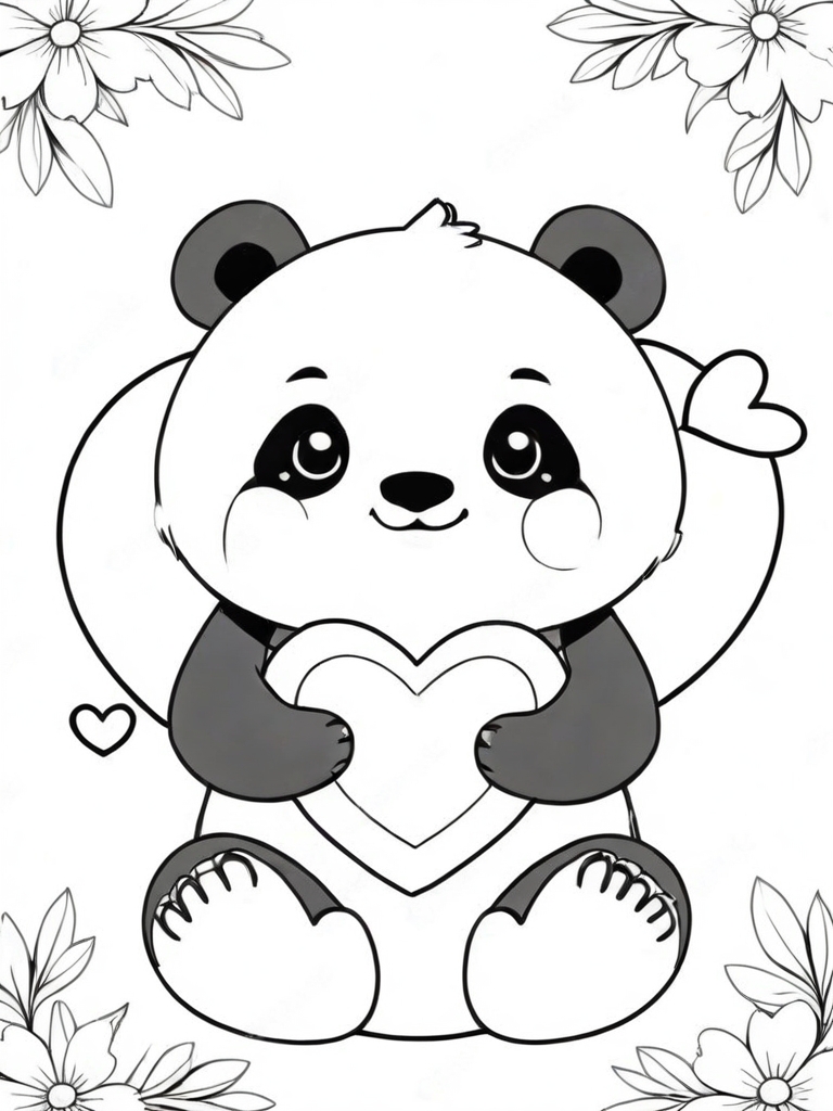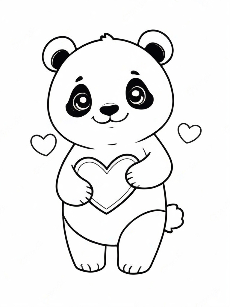 A panda surrounded by hearts, ideal for expressing love and affection in color.
