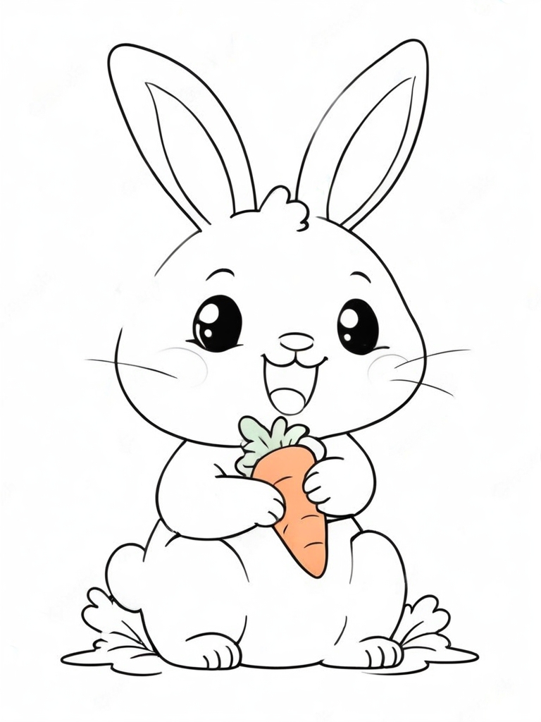 A happy rabbit holding its carrot, a classic and playful kawaii motif.