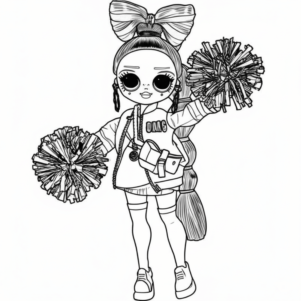 A cheerful LOL doll with pompoms, great for energetic and vibrant colors.