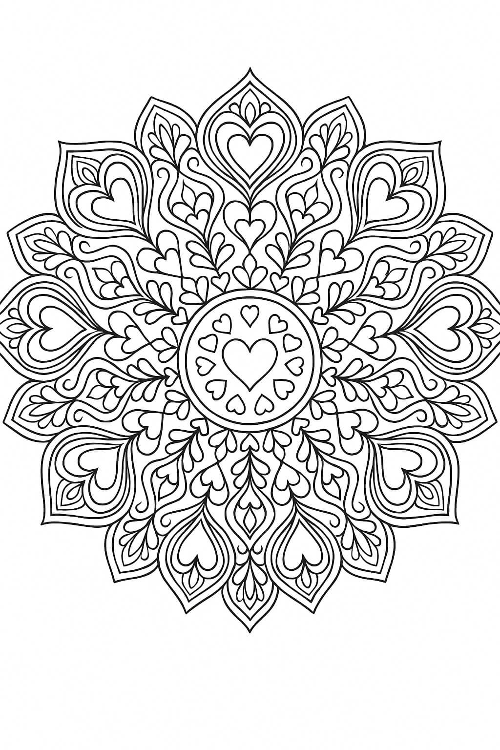 Mandala with Hearts Coloring Page
