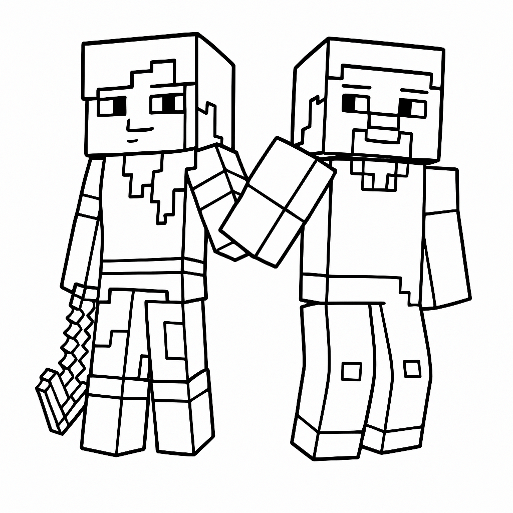 Minecraft Alex and Steve Coloring Page