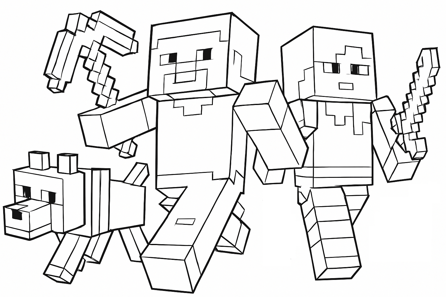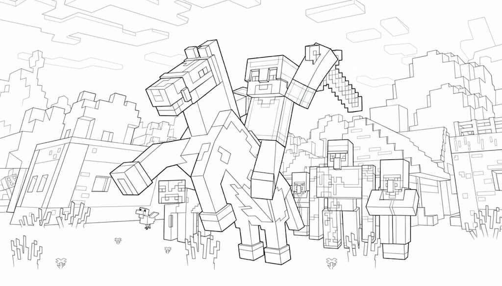 Step into the blocky world of Minecraft! This collection features a variety of Minecraft coloring pages, from Steve and Alex to zombies and skeletons, plus landscapes, villages, tools, and wild scenes. Ideal for creative fans who want to bring their favorite characters and moments to life with color.