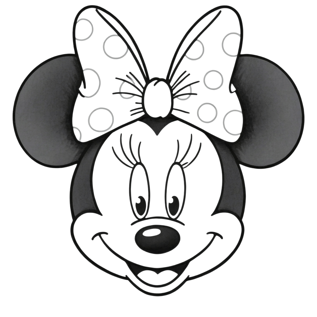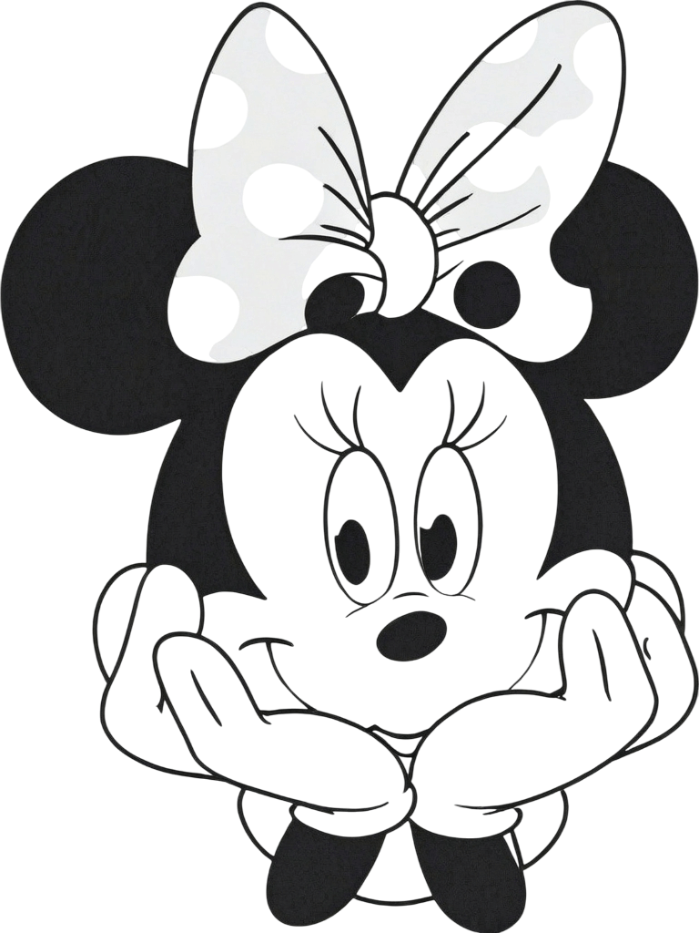 A lovely Minnie portrait, ideal for carefully coloring her expression, bow, and details.