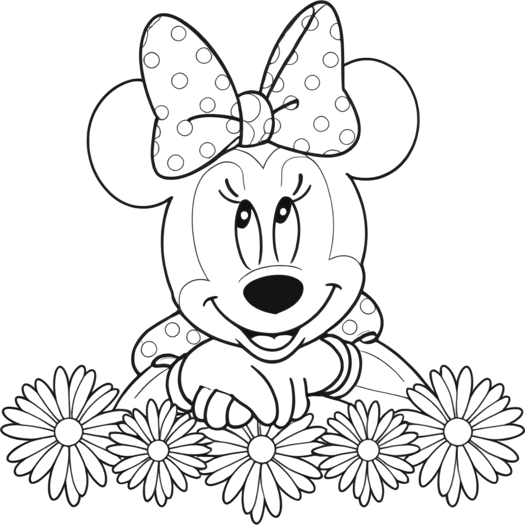 Minnie Mouse in a Flower Field Coloring Page