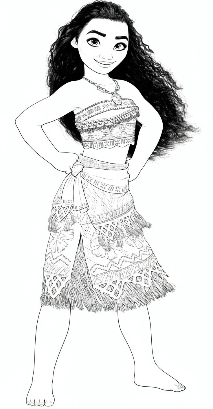 Moana with Black Hair Coloring Page