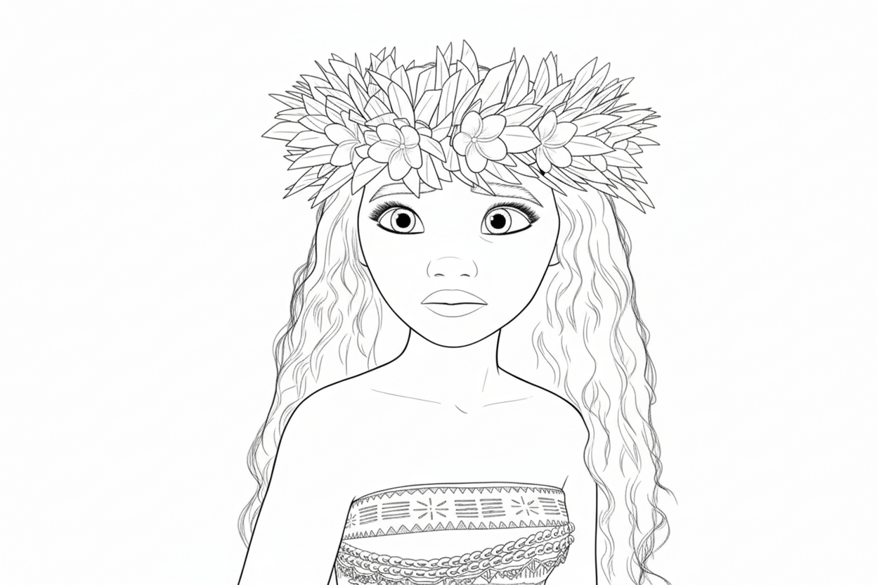 Moana with Crown Coloring Page