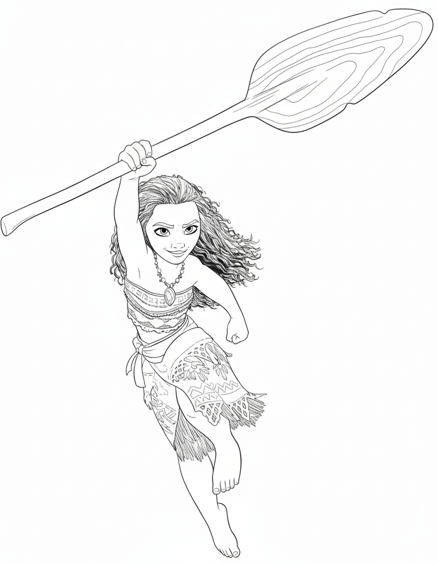 Moana with Magic Paddle Coloring Page