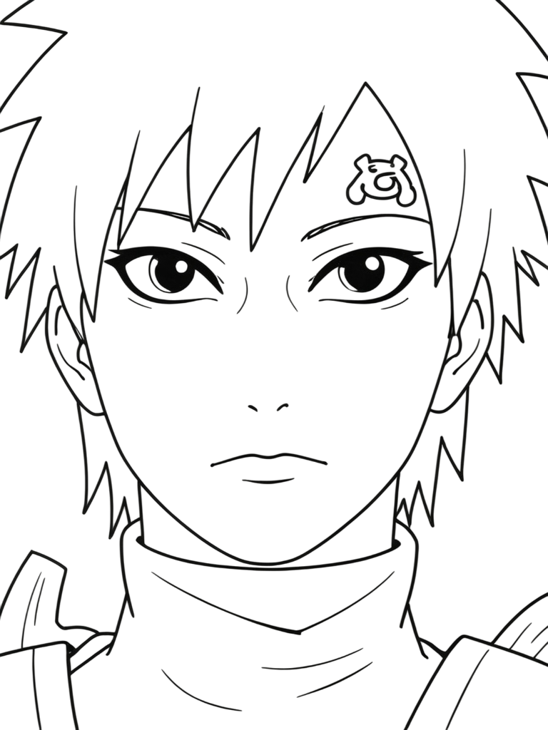 Gaara with a serious look and his signature forehead tattoo, perfect for fans of the desert ninja.