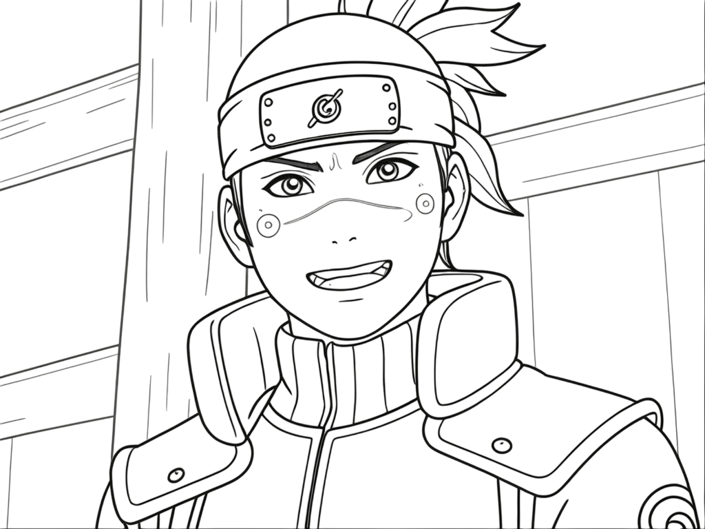 Iruka Sensei, one of Naruto's first teachers, with a friendly expression - a calm page to color.