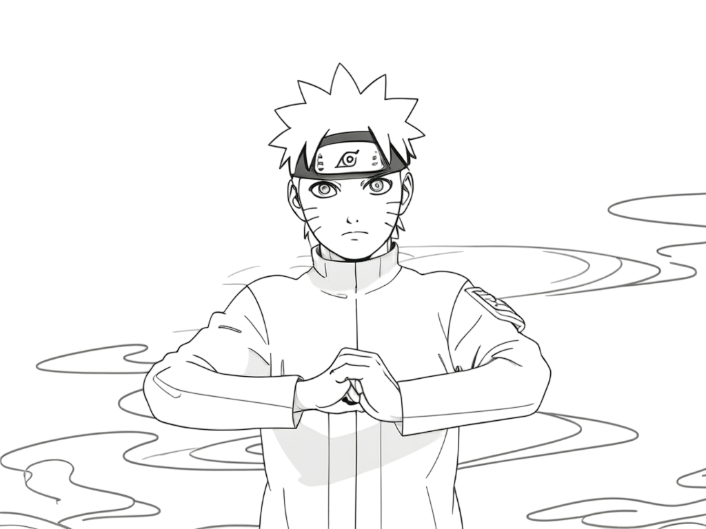 A classic portrait of Naruto Uzumaki, ideal for coloring his headband, hair, and ninja outfit.