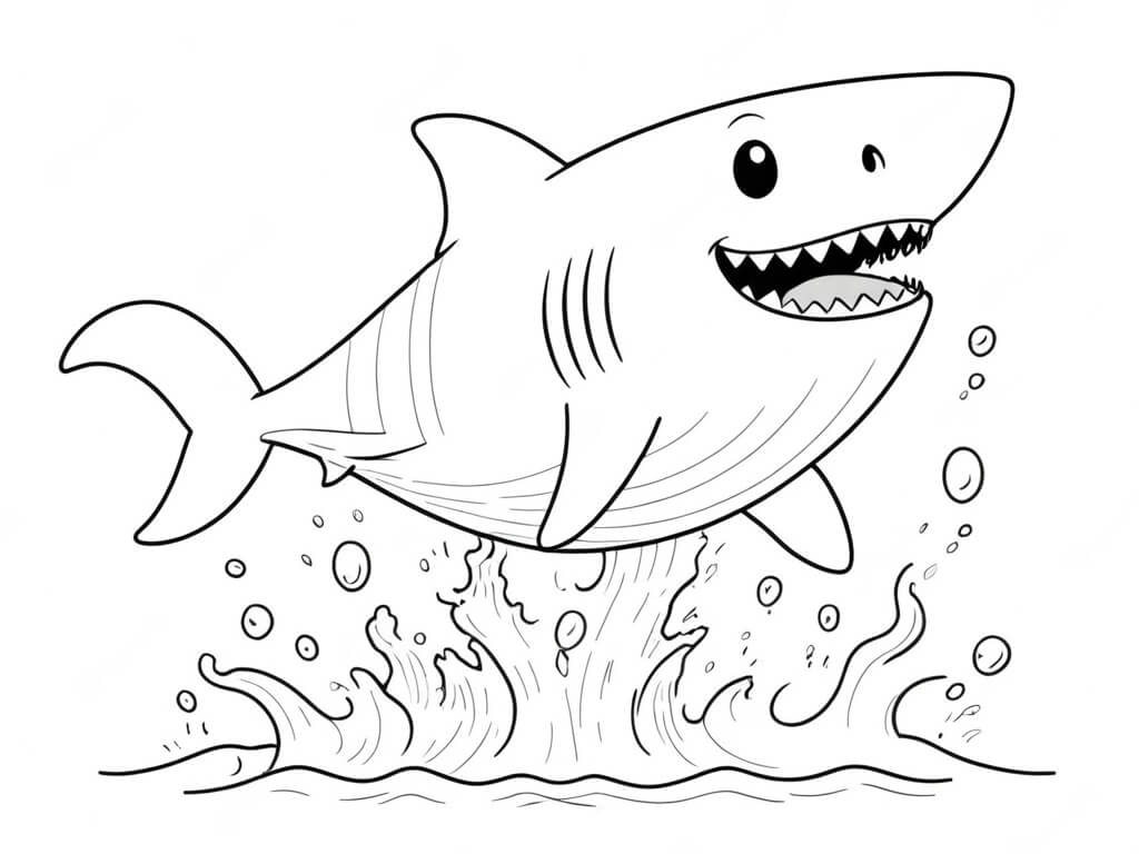 A cheerful shark jumping out of the water, perfect for bright and lively colors.