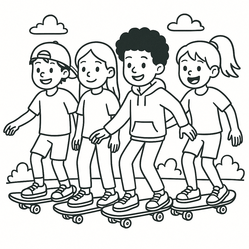 Skateboard Friends Coloring Page