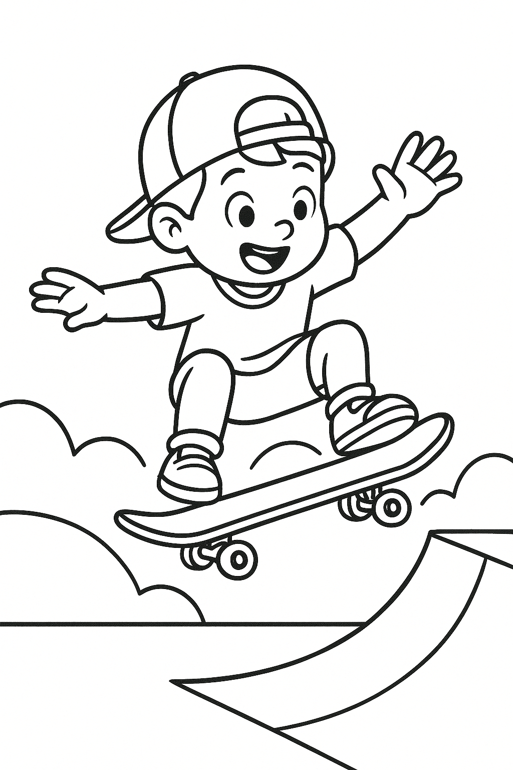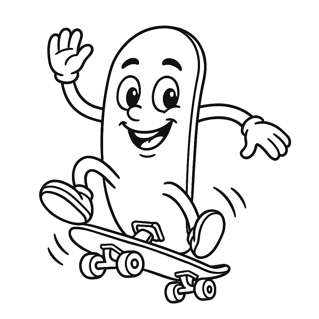 Ready for a creative skate session on paper? In this collection you will find cool skateboard coloring pages: skaters in action, groups of friends, a skater dog, a penguin on a board, skateparks, and skate gear. Print your favorite designs and color them with markers, colored pencils, or crayons!