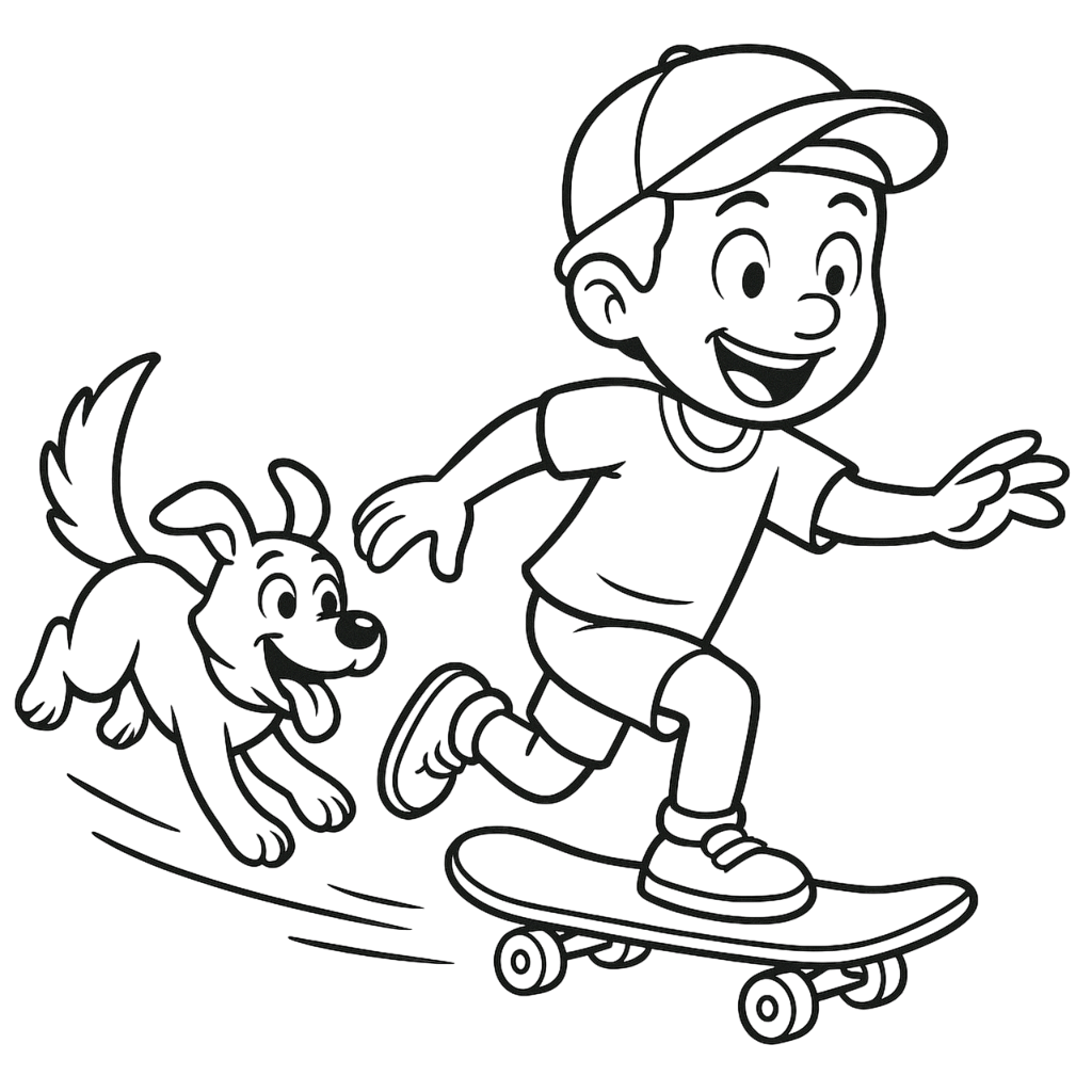 Skater and Dog Coloring Page