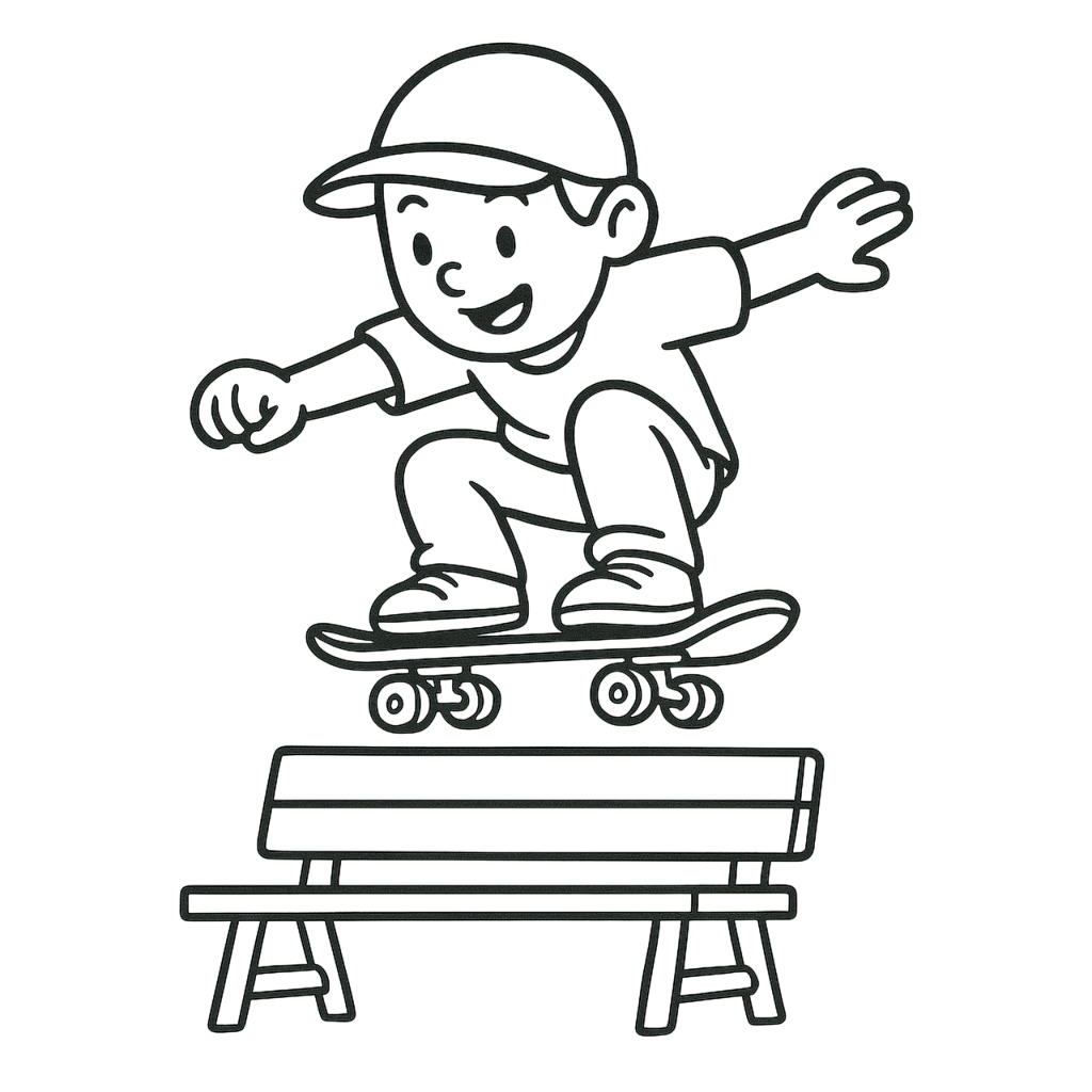 Skater Jumps Over the Bench Coloring Page