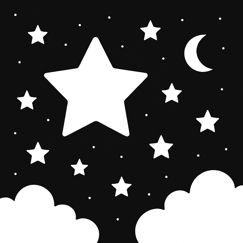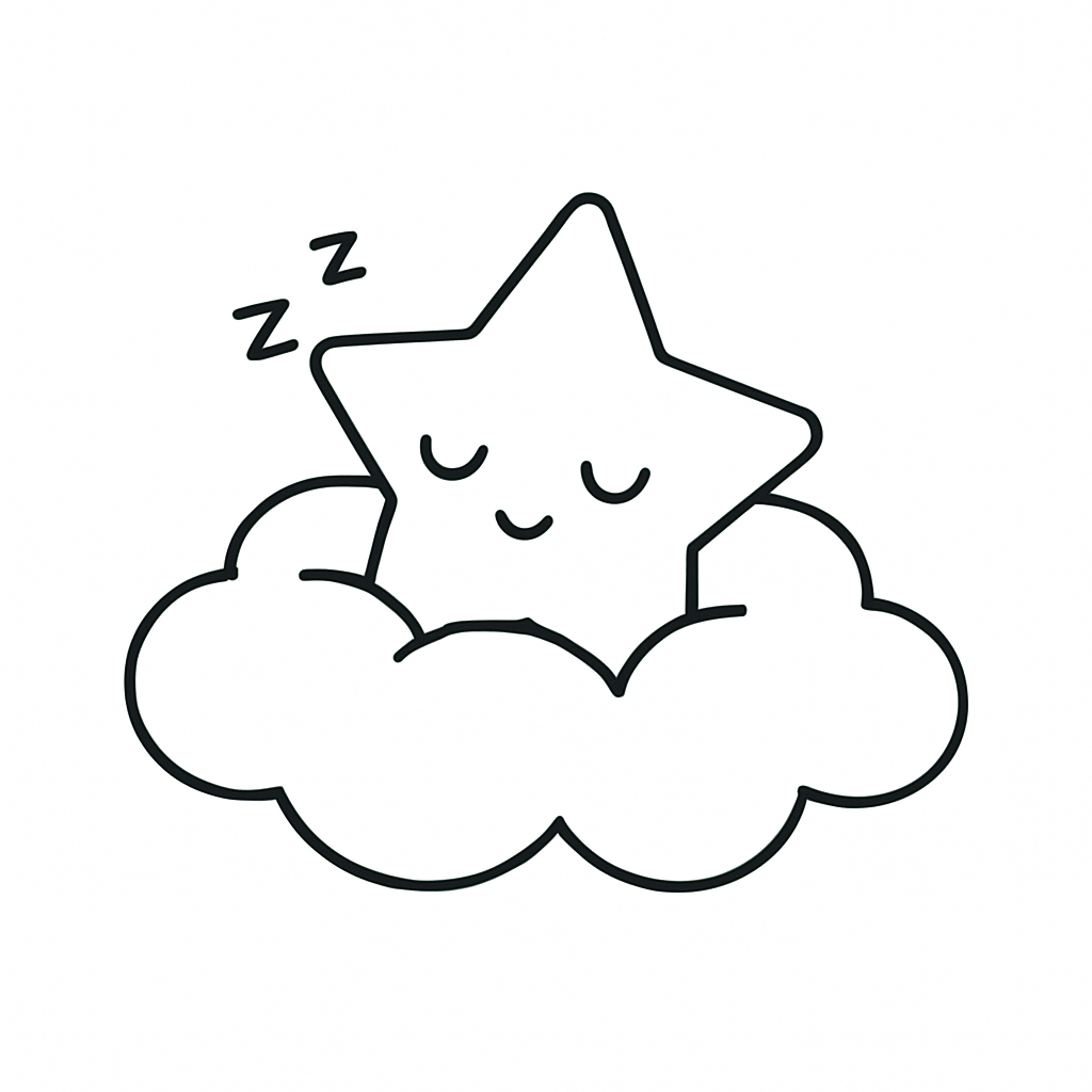 A little baby star sleeping peacefully on a soft cloud. Ideal for pastel colors and gentle night moods.
