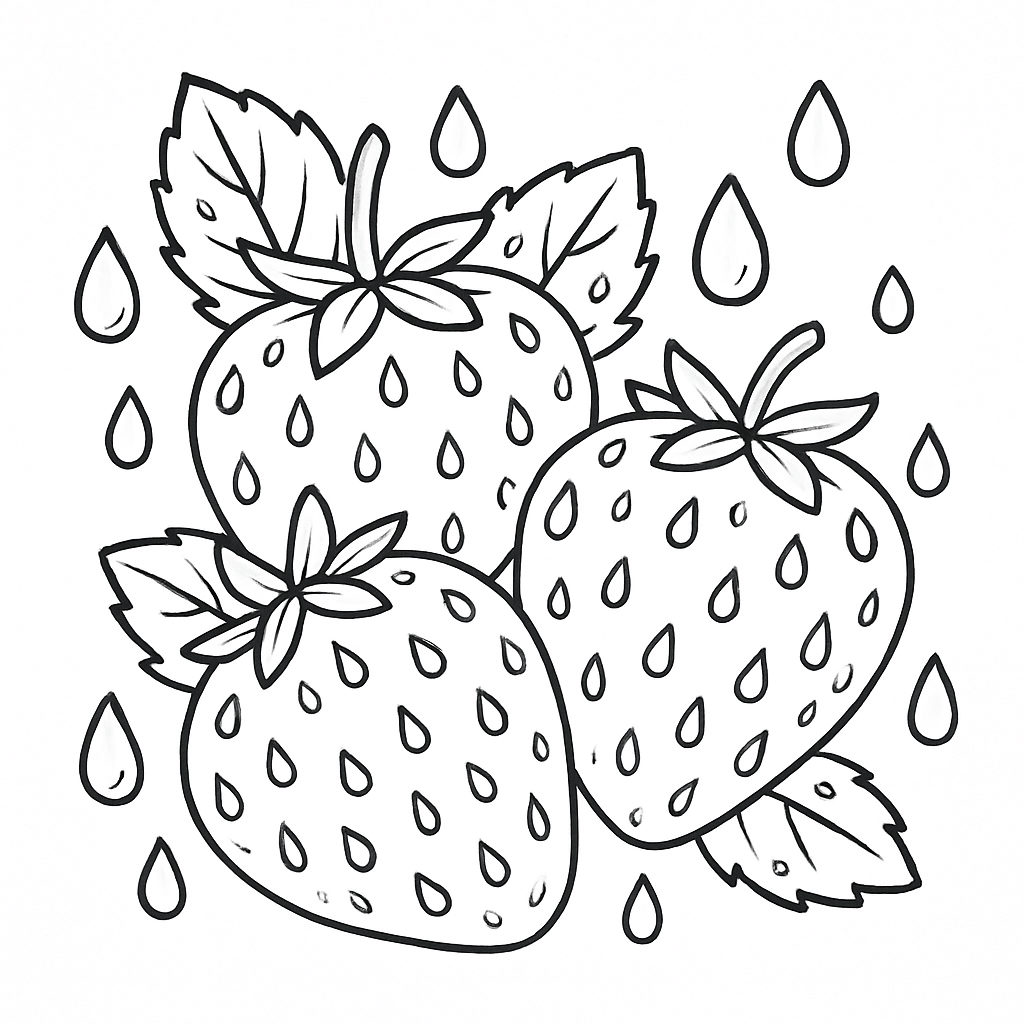 A light summer rain makes everything shine. Color the raindrops and the juicy fruit.