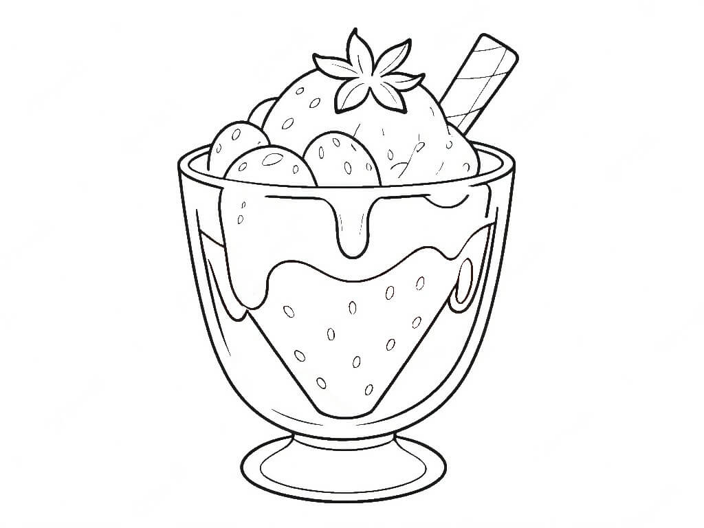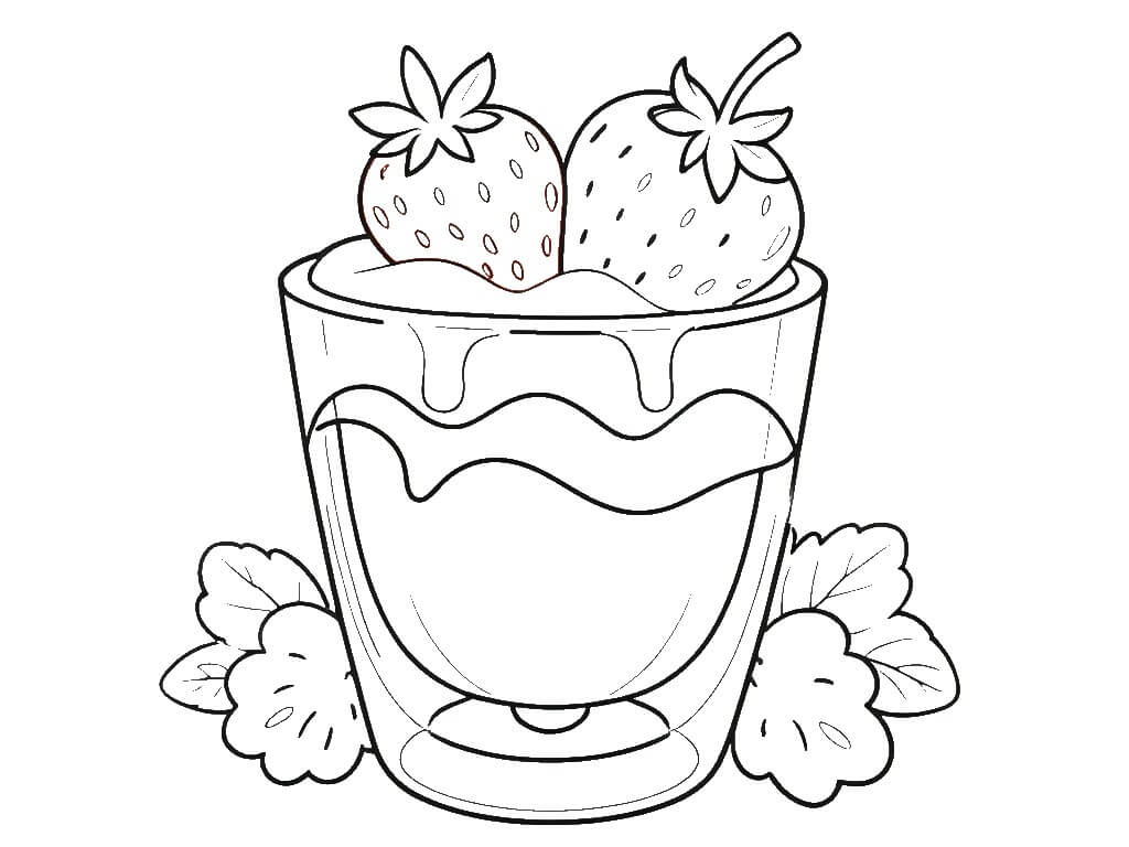 Chocolate, cream, and strawberries—a delicious trio to color.