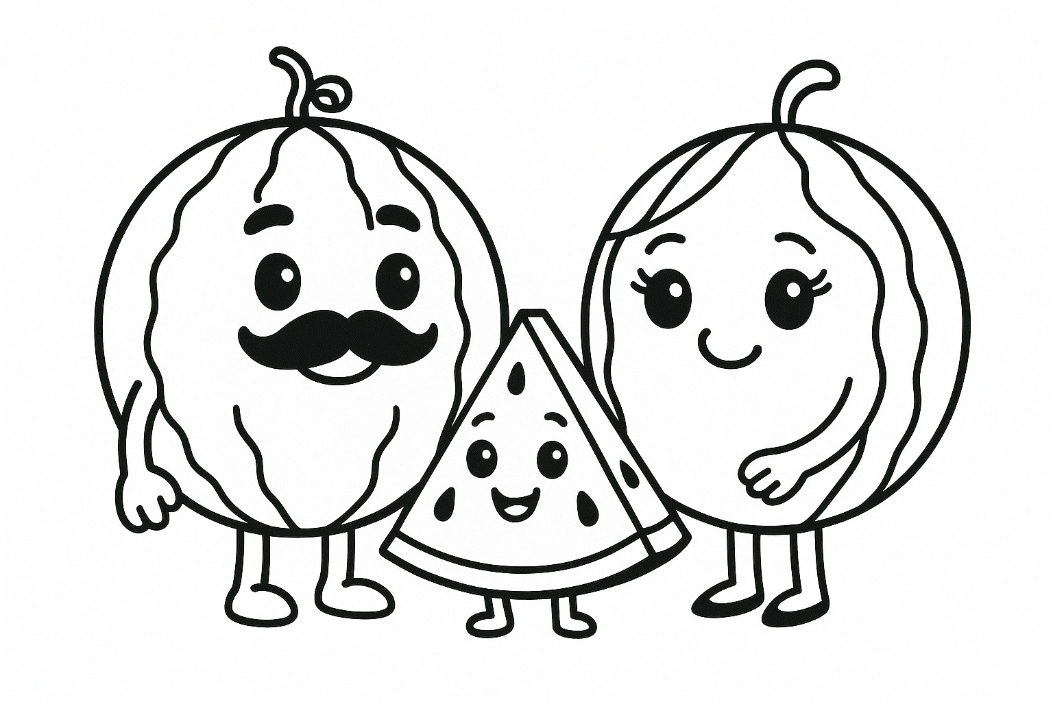 Watermelon is fresh, sweet, and perfect for summer coloring adventures! Here you'll find beautiful watermelon coloring pages - from watermelon families to guitar-playing and pirate watermelons. Ideal for kids and creative minds!